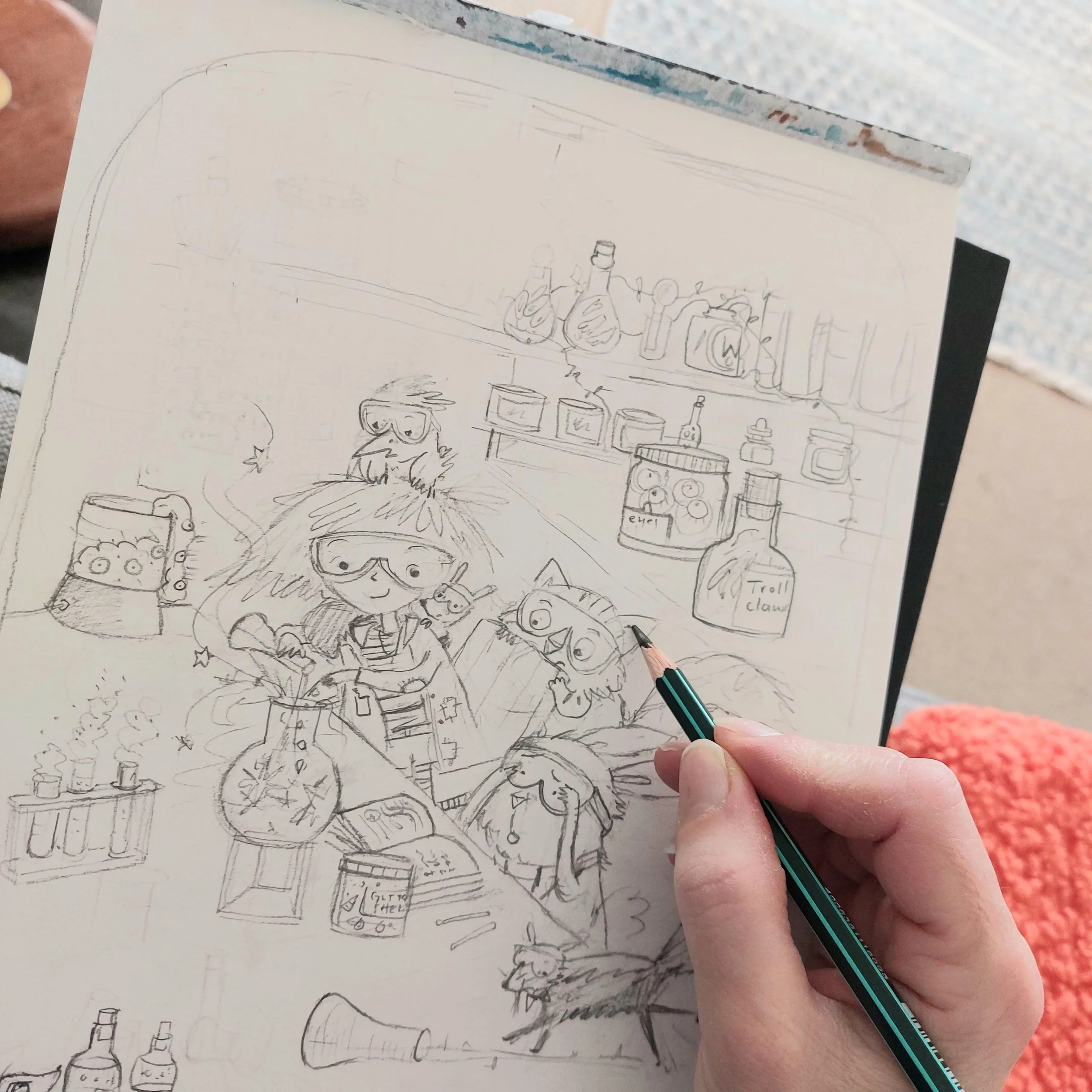 Sketching in pencil to start my illustration